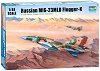 Мащабно умален сглобяем модел на руски изтребител - МиГ-23 МЛД Flogger-K. За да може да сглобите и залепите този макет, ви е необходимо лепило. Елементите на модела са направени от едноцветна пластмаса. Моделът може да се оцвети с боички. За МиГ-23 МЛД Flogger-K МиГ-23 (на руски: Микоян и Гуревич МиГ-23), название на НАТО: (Flogger) е съветски от трето поколение. Той е първият съветски изтребител, използващ ракети клас "въздух-въздух" със средна далечина на действие, поразяващи цели отвъд пределите на визуалното откриване. Производството му започва през 1970 година и приключва в средата на 80-те години с ... |